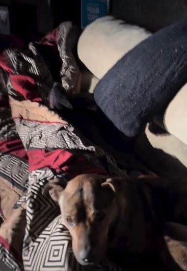 According to the animal rescue organization NYC Second Chance Rescue, its team responded to a report of a dog left at a well-known dumping site. When rescuers arrived, they discovered a frightened dog curled up tightly on a dirty couch near a dumpster. She was shaking—likely from the cold, but also from fear.